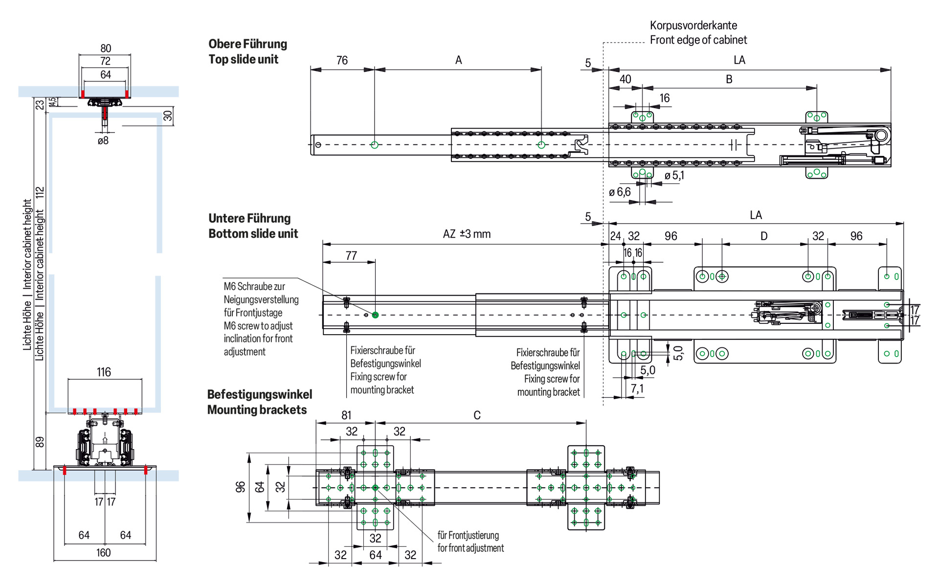 - Soft self-closing mechanism with 50 mm damping at both top and bottom guides