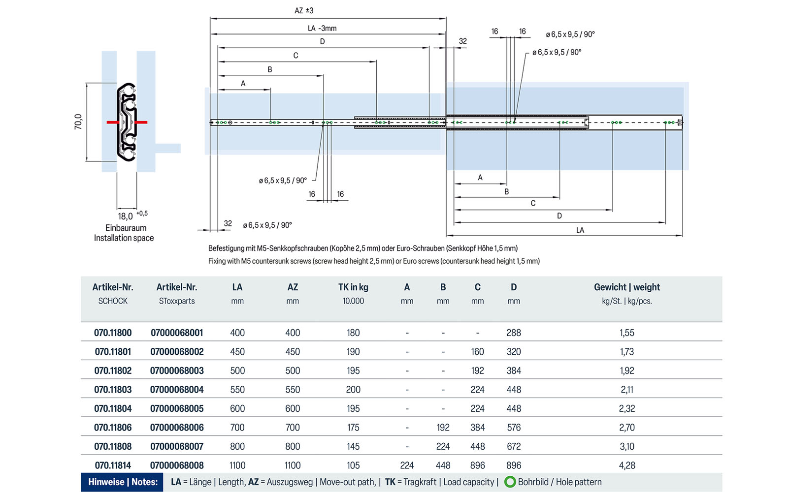 Telescopic slide full extension 070 | up to 200 kg | Schock telescopic slides
