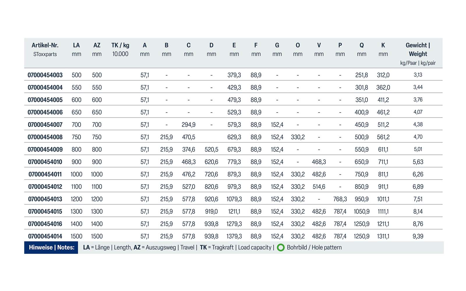 • Load capacity: up to 227 kg / pair