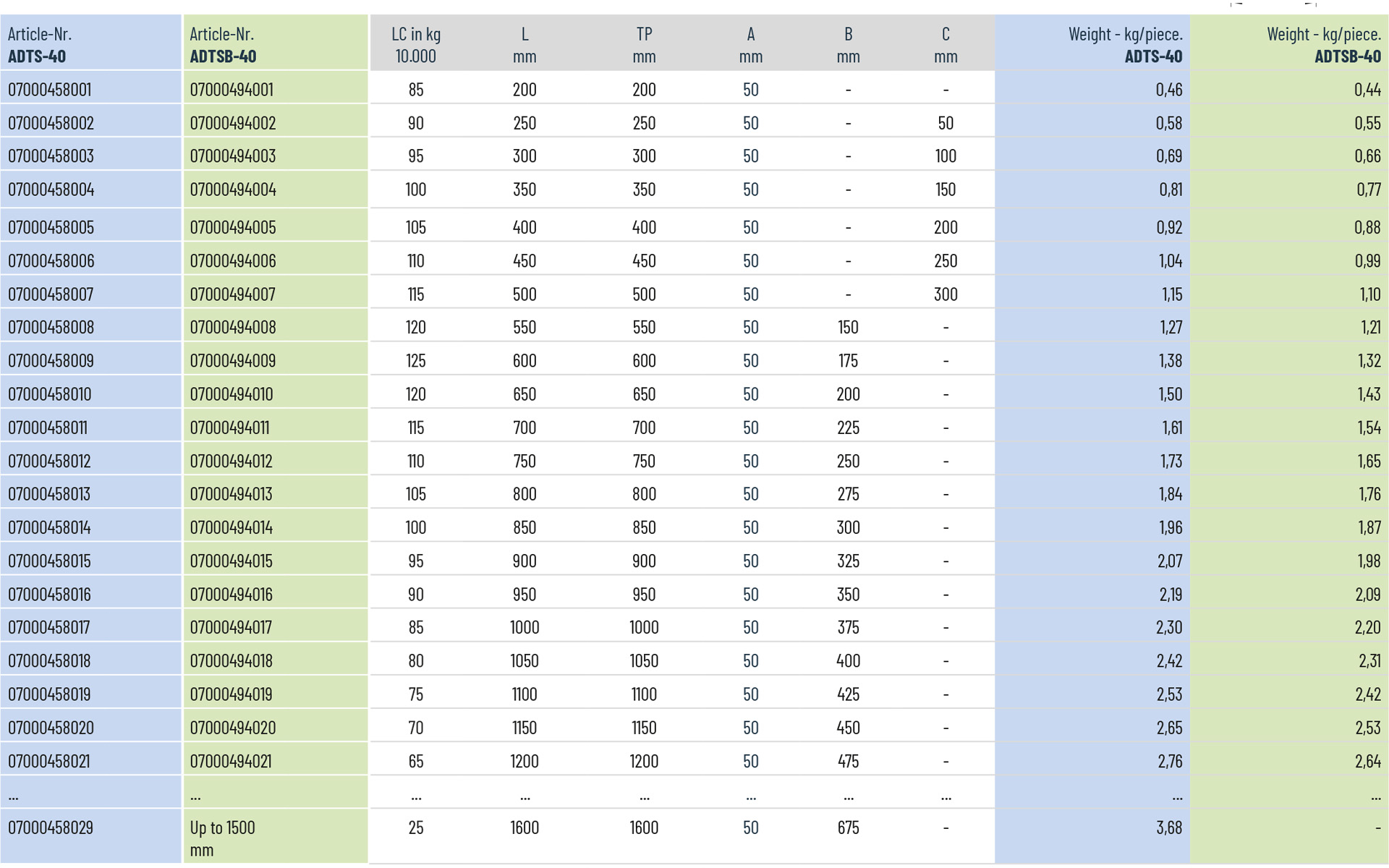 Cross section: 24 x 40 mm | Length: 300 up to 1500 mm | extendable on both sides