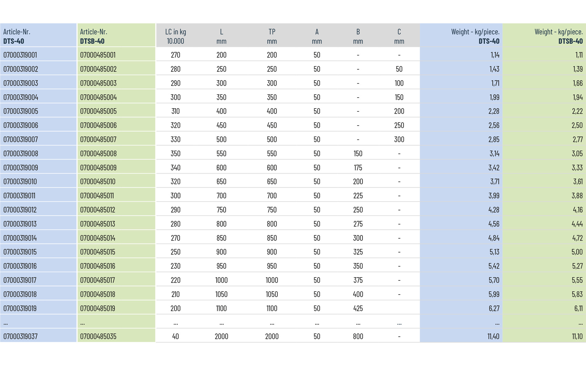 Length: 200 mm to 2000 mm