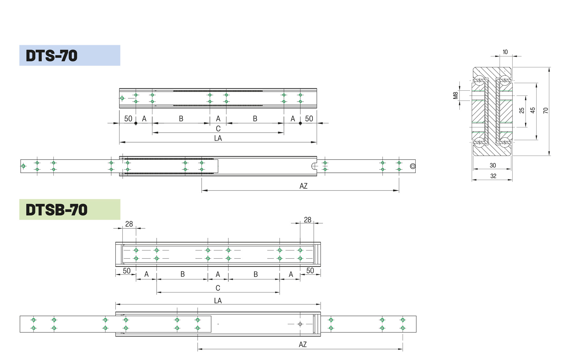 Telescopic slide full extension DTSB-70 | up to 700kg | Schock telescopic slides