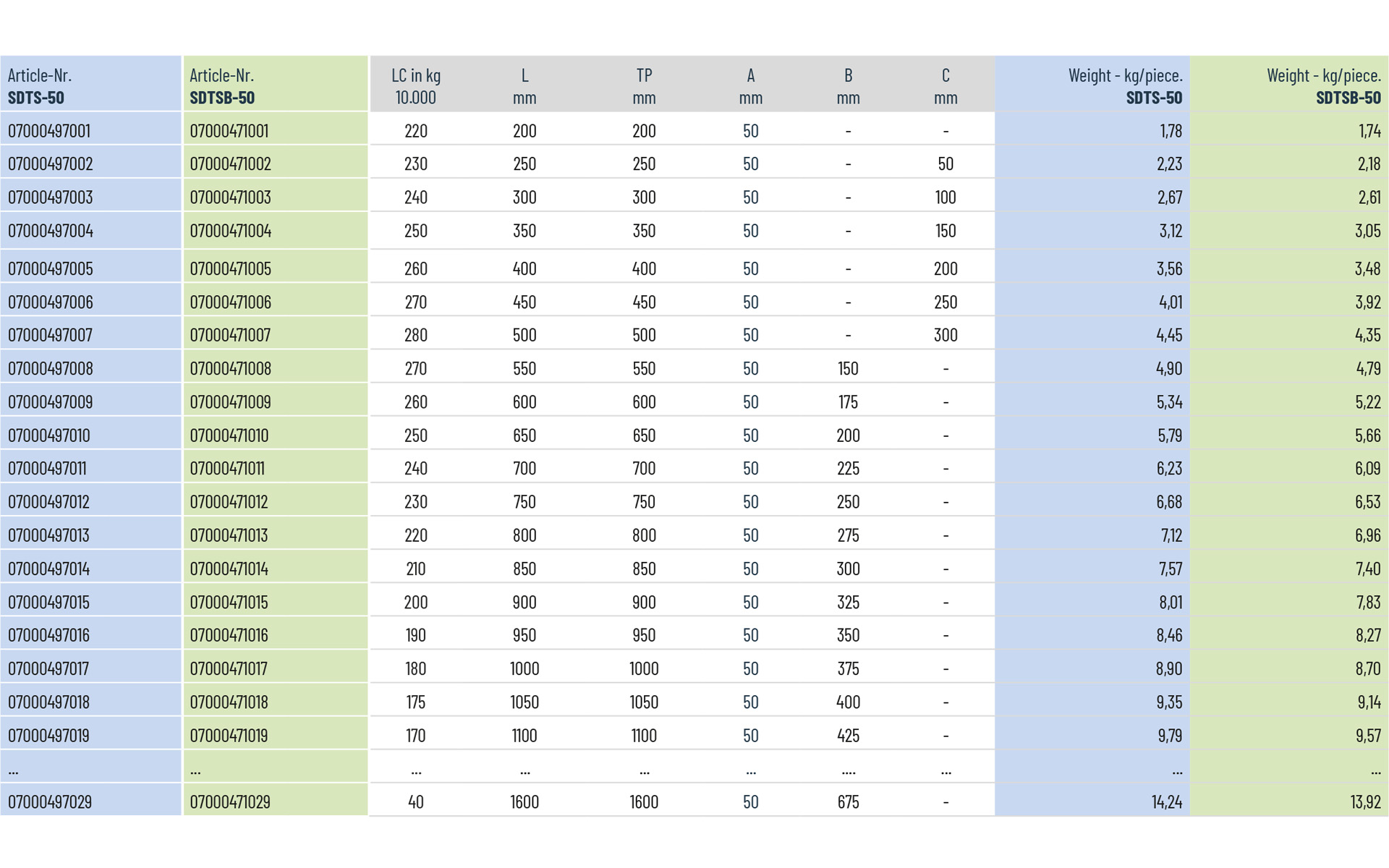 The slides are made of machined stainless steel 316L. The ball cages and ball bearings are also made of stainless steel 316/316L. A single SDTSB-50 weighs 8.74 kg per meter.