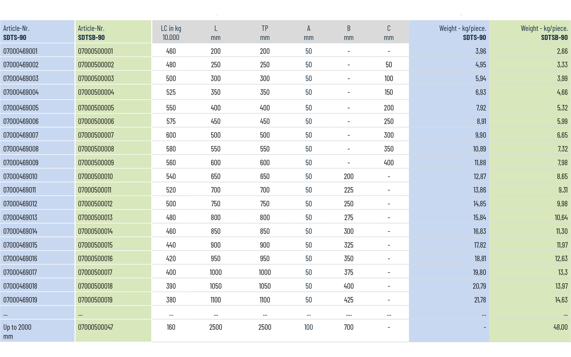 Load capacity: up to 600 kg/pair
