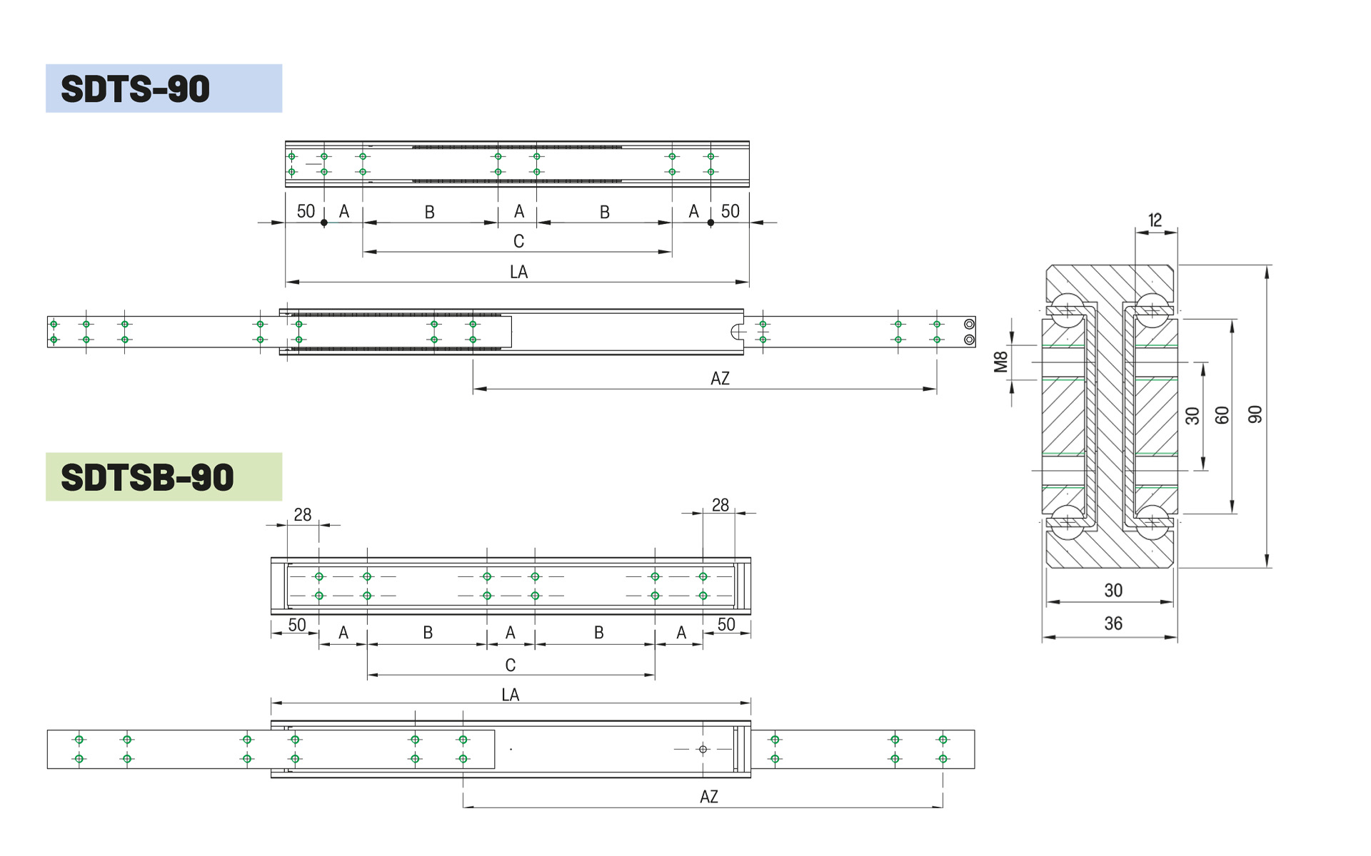 Cross-section: 36 x 90 mm