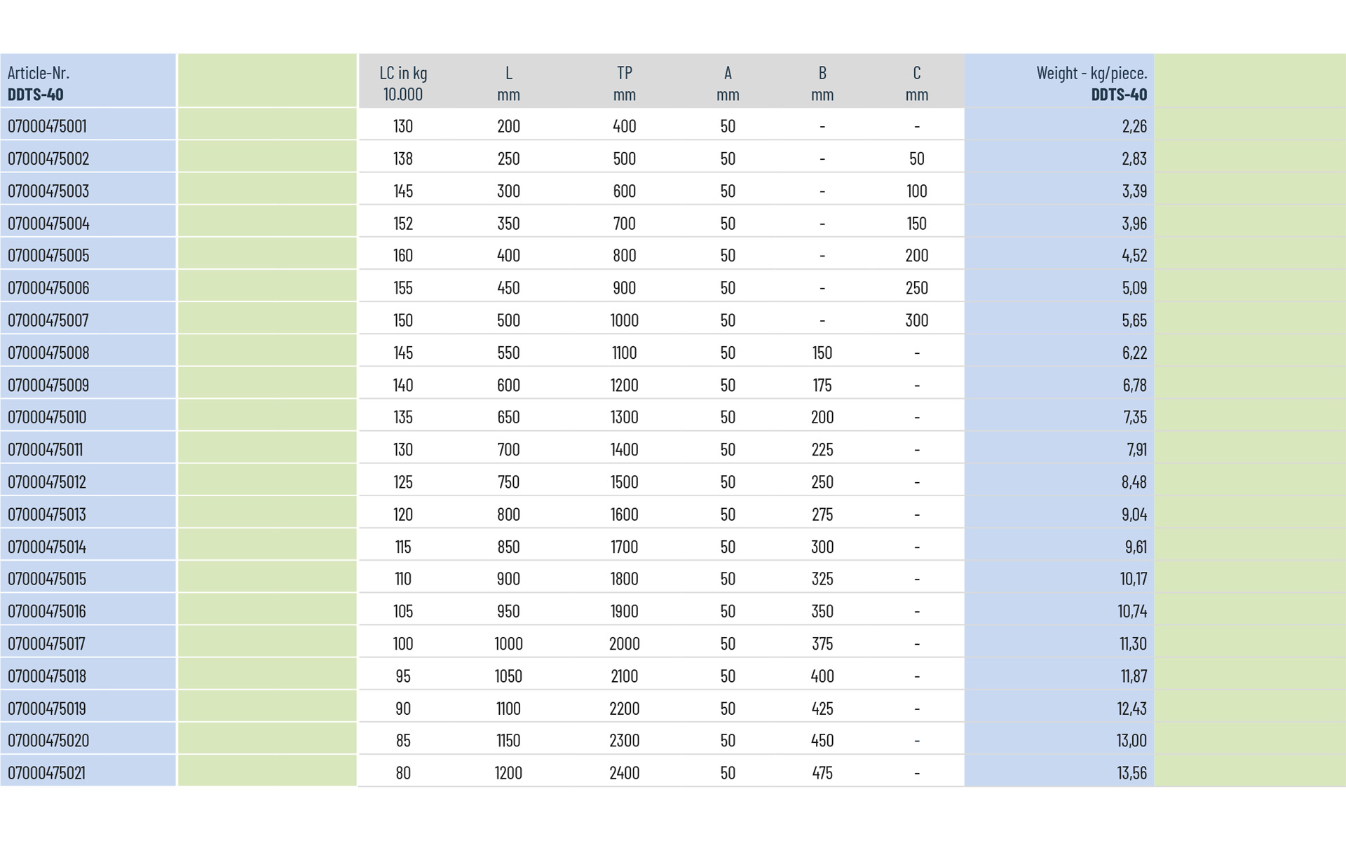 Cross-section: 48 x 40 mm | Length: 200 to 1200 mm