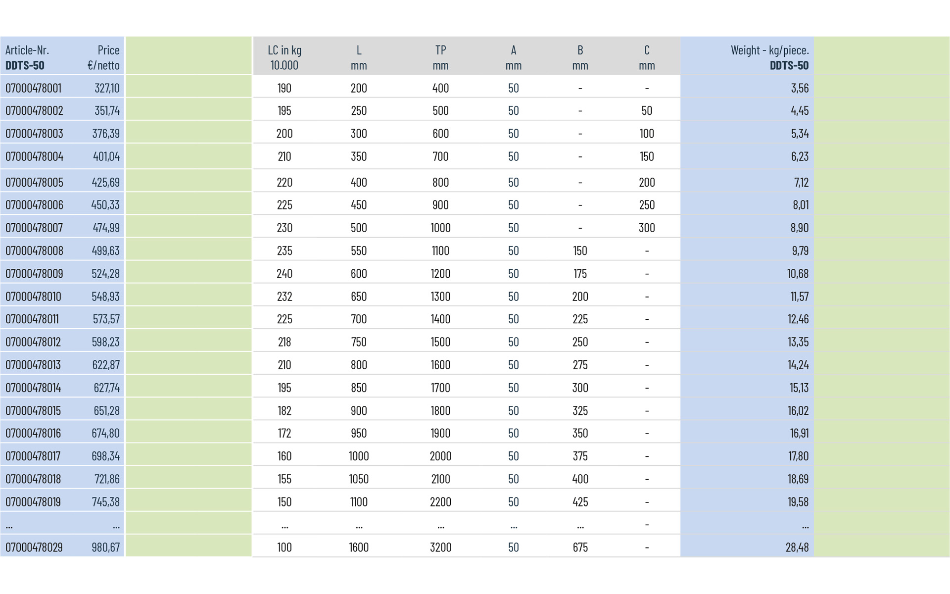 Cross-section: 48 x 40 mm | Length: 200 to 1600 mm