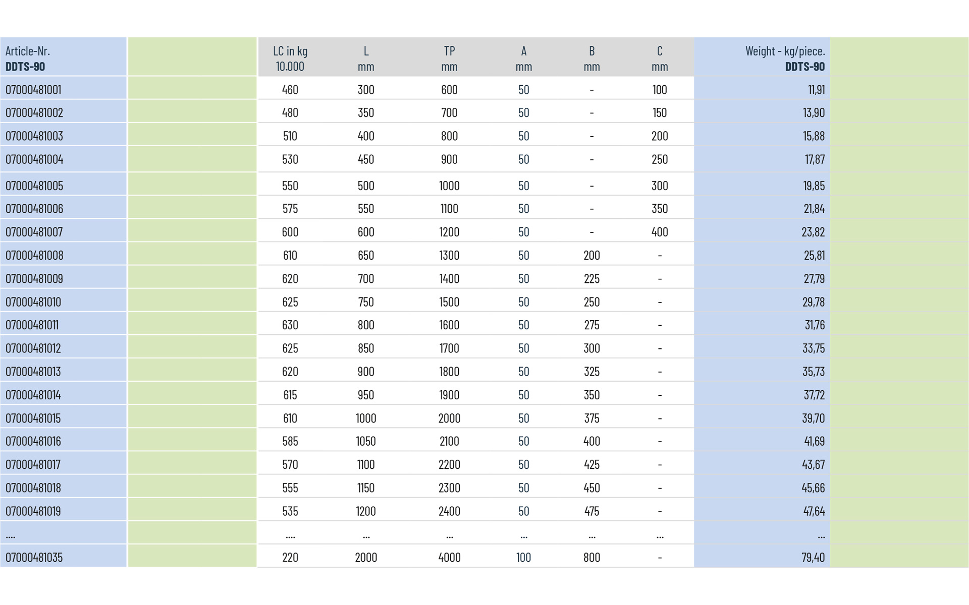 Load capacity: up to 630 kg/pair