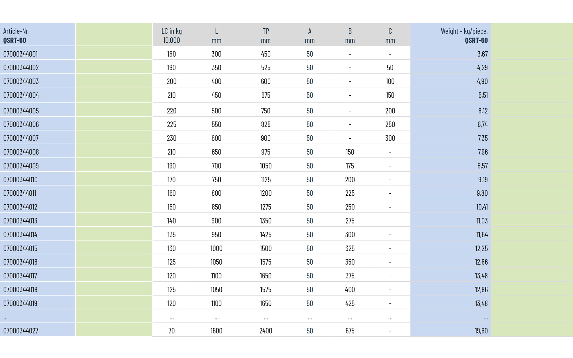 The load capacities per pair indicated in this catalog include such a high safety margin that the rails are suitable for multiple applications. The safe working load depends on the extension, the type of carriage and mounting, and the frequency of use/number of cycles. This means that a longer extension limits the safe load. When mounting the slides in secondary axis arrangement, the safe working load is reduced by approx. 40% depending on the slide.