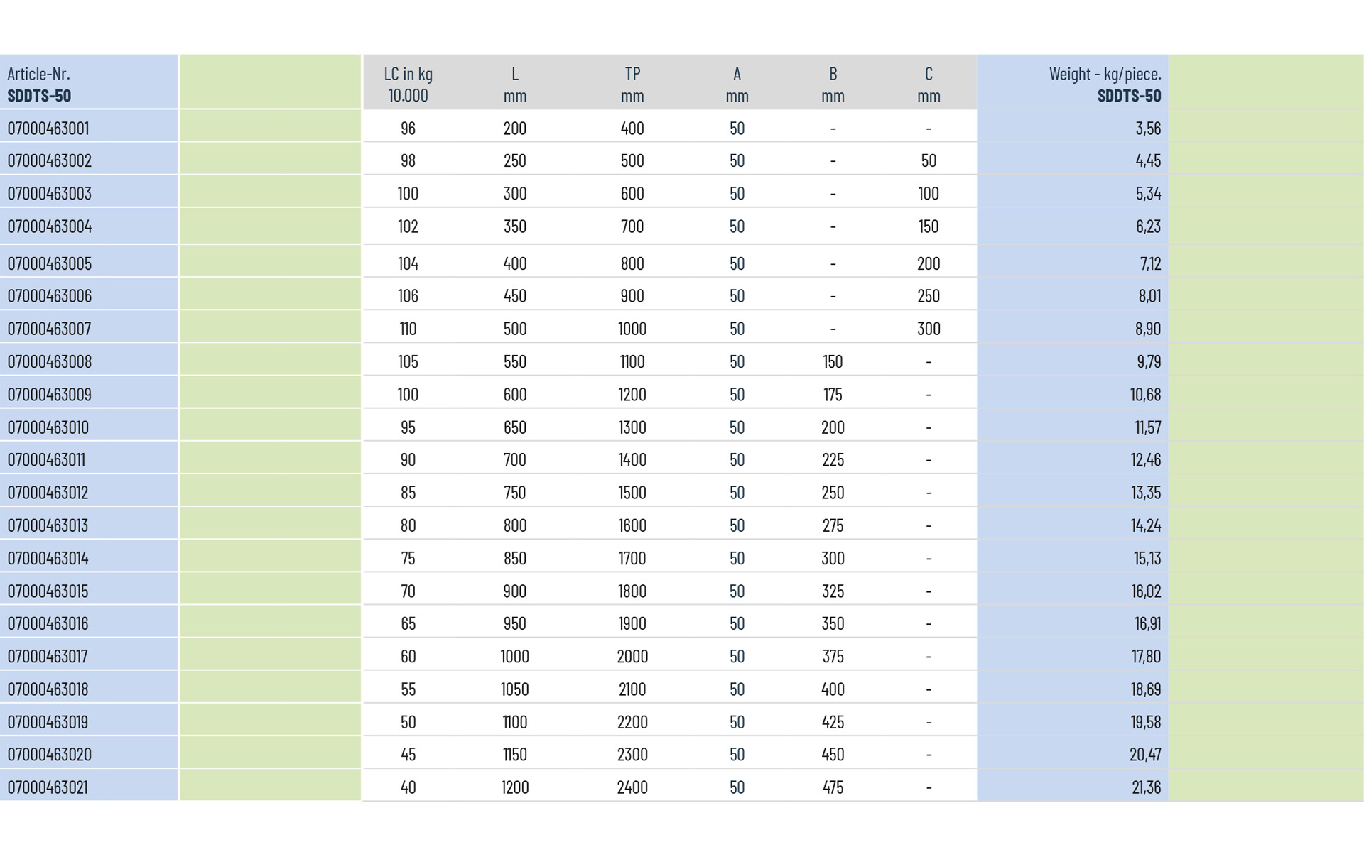 Cross-section: 60 x 50 mm | Length: 200 to 1200 mm