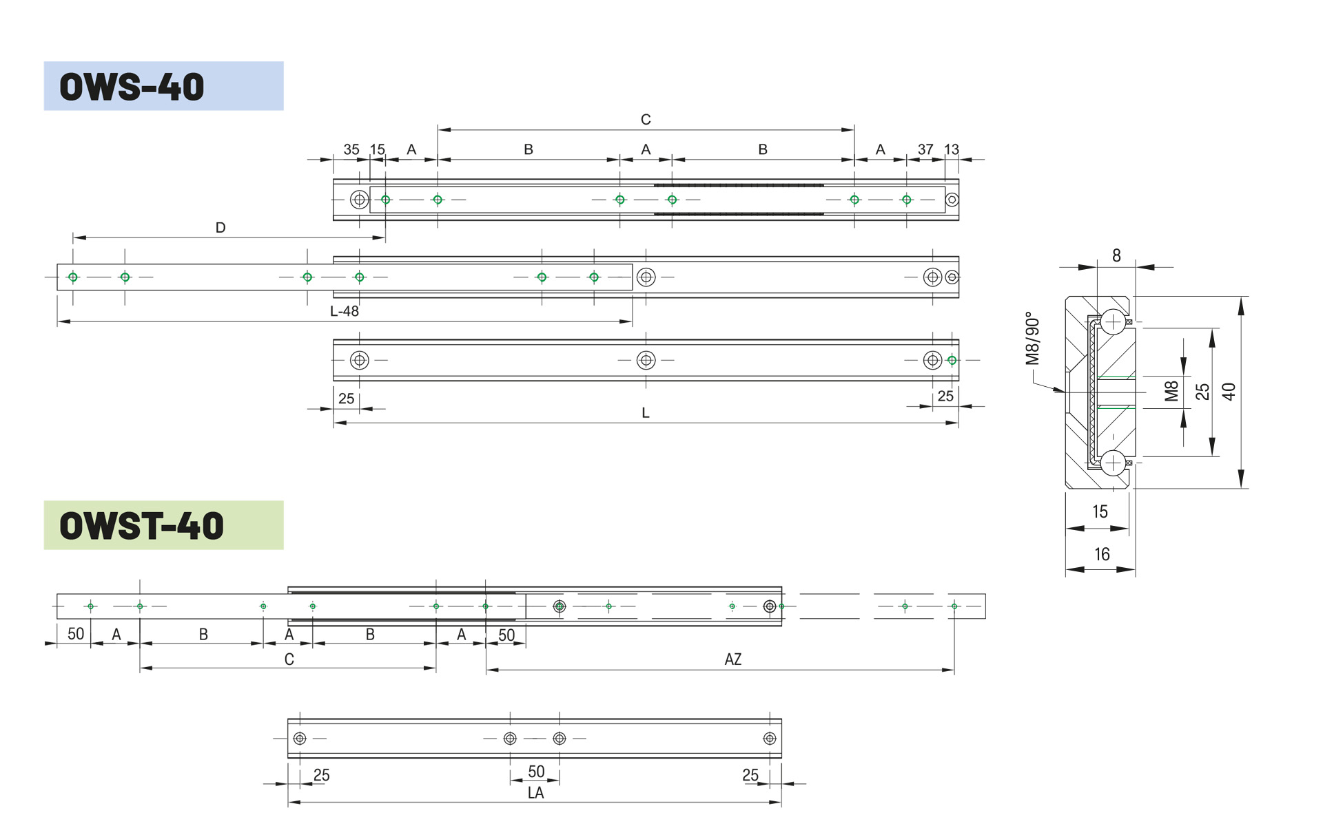 The general manufacturing tolerances of telescopic slides are in accordance with js13 standard for bores and linear dimensions. Straightness is 1 mm/m and twist is 1 degree/m.