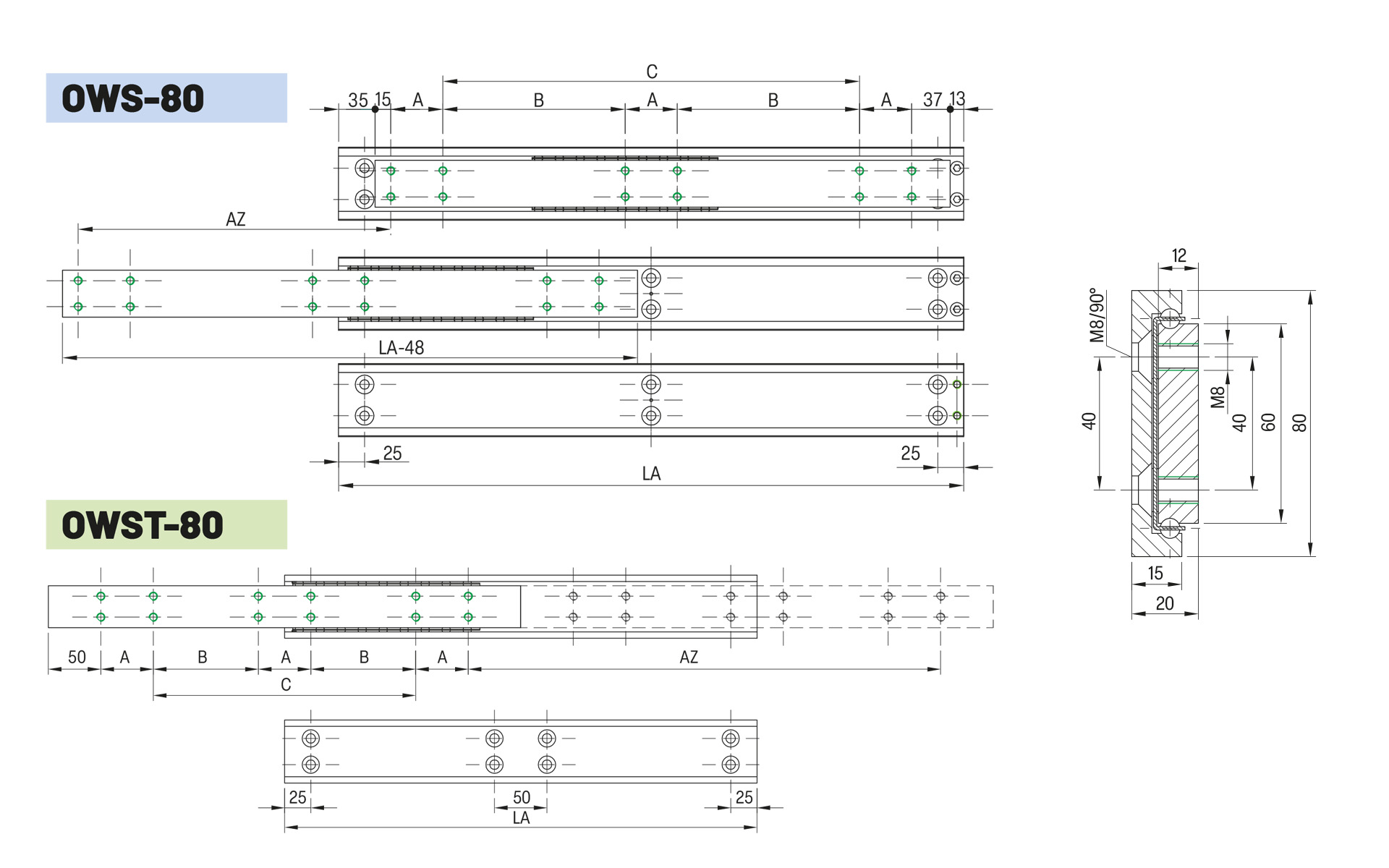 Telescopic slide partial extension OWST-80 | up to 1080kg | Schock telescopic slides