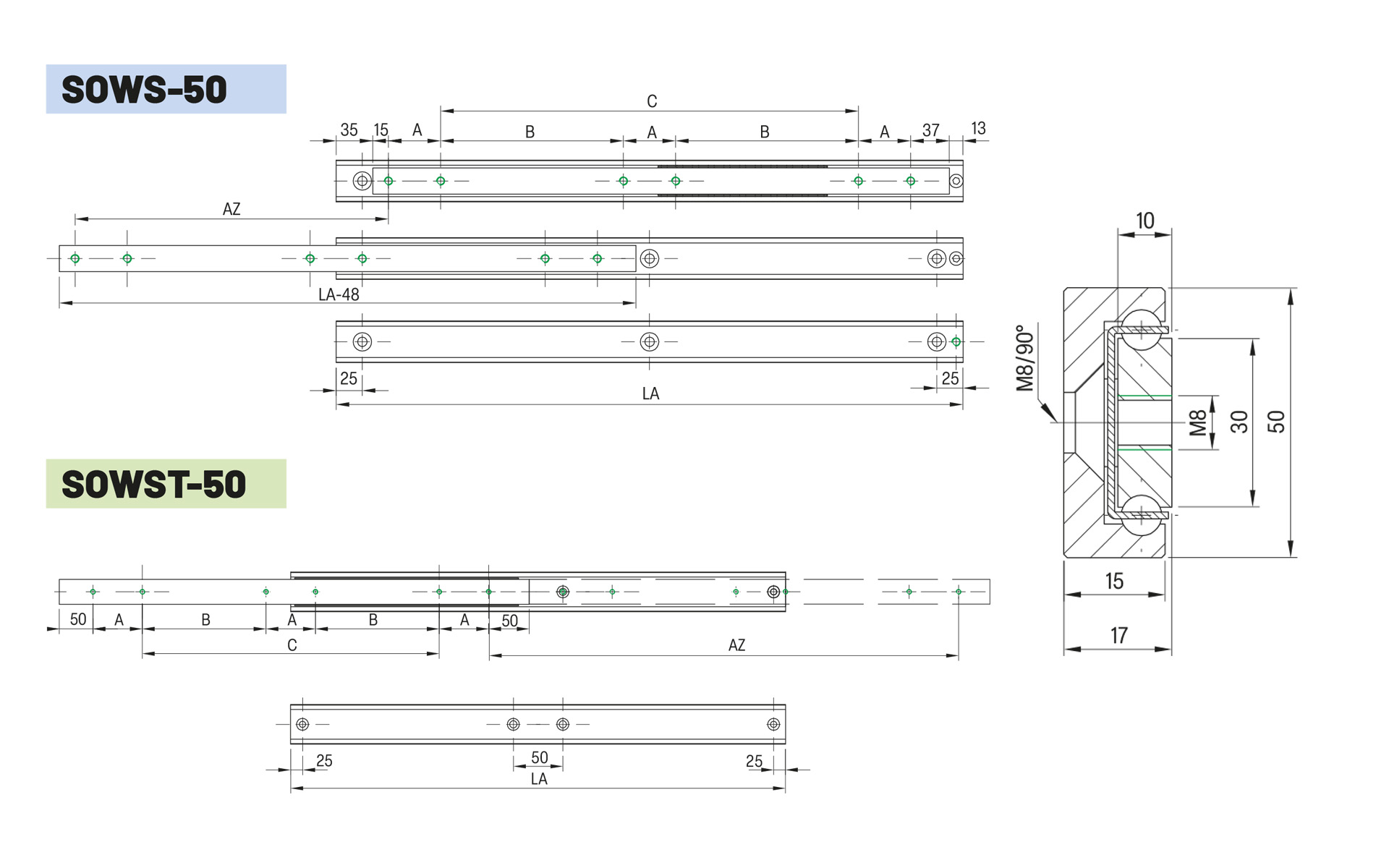 The SOWST-50 is particularly suited for highly corrosive applications with prolonged exposure to the elements. Having a compact 50mm profile, this makes it an excellent choice for heavy duty marine seating or military/emergency truck drawers which operate in wet conditions. This is an extreme load/duty front and rear extension telescopic slide (60Kg 400Kg/pair) suitable for a wide range of applications.